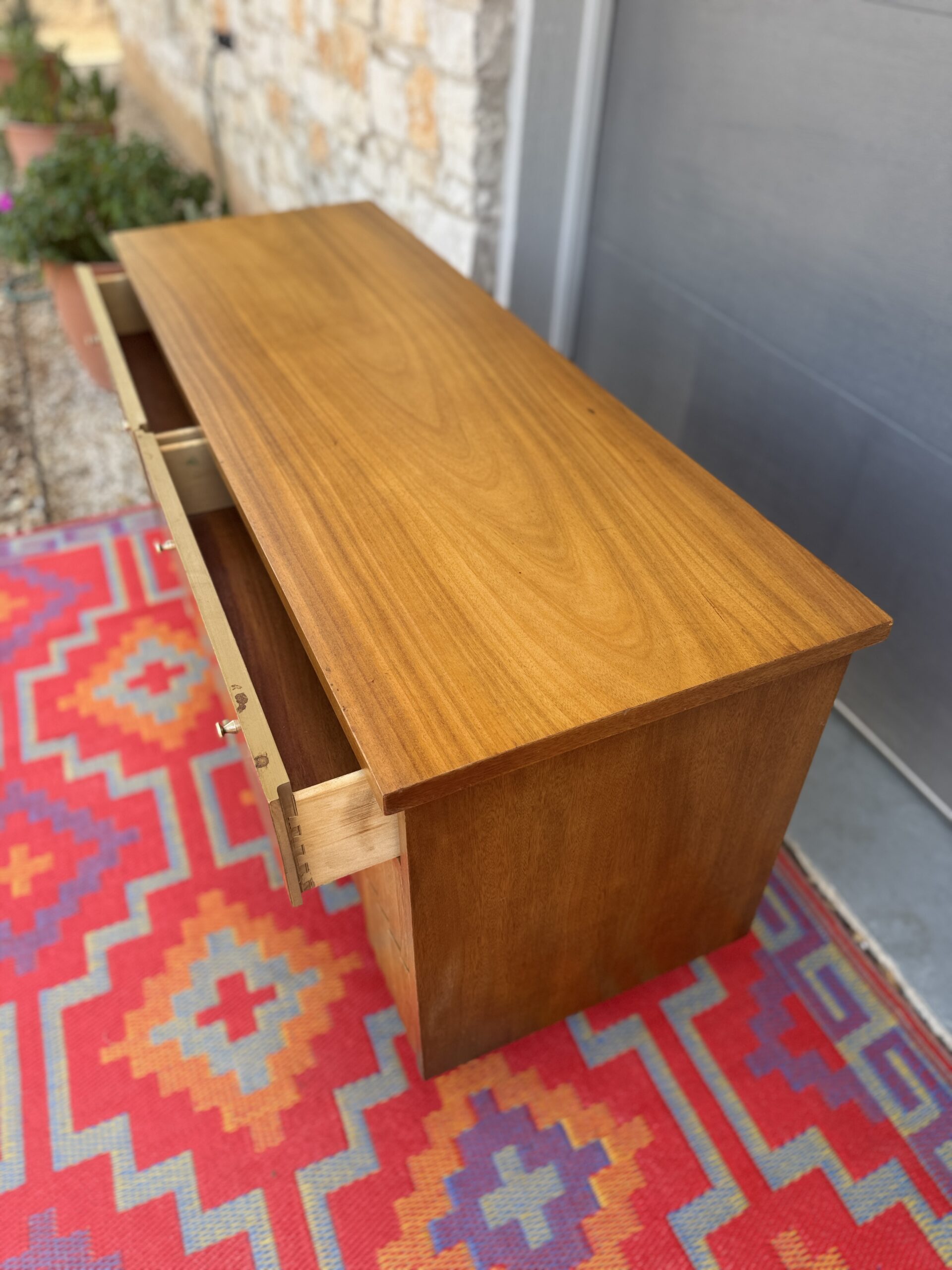Vintage six drawer dresser by Basic Witz. The top has been refinished and all drawers glide smoothly.