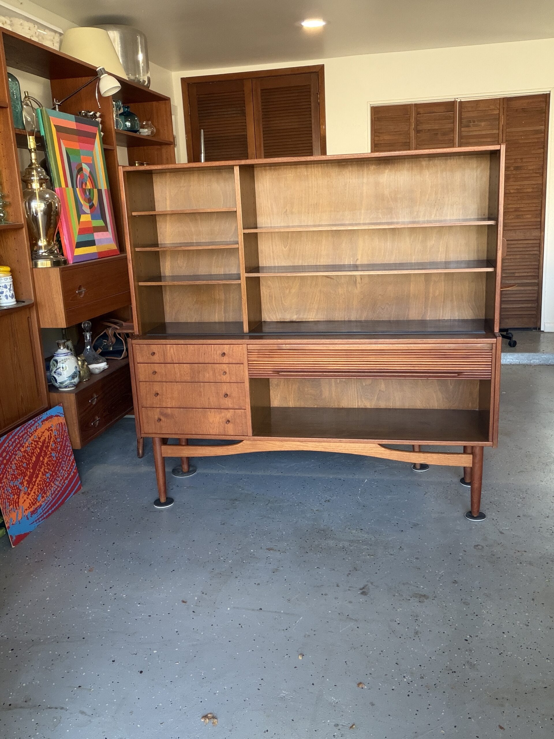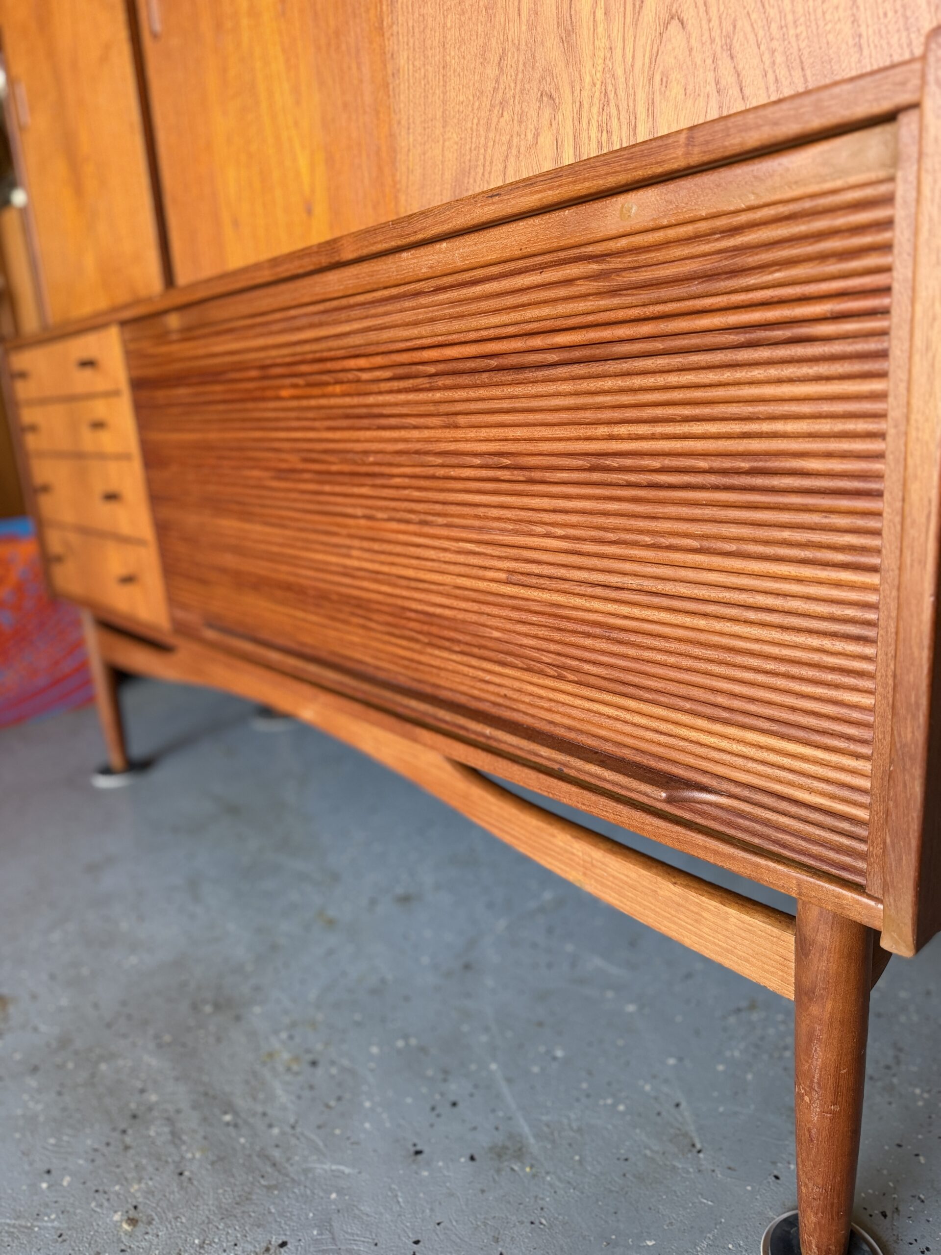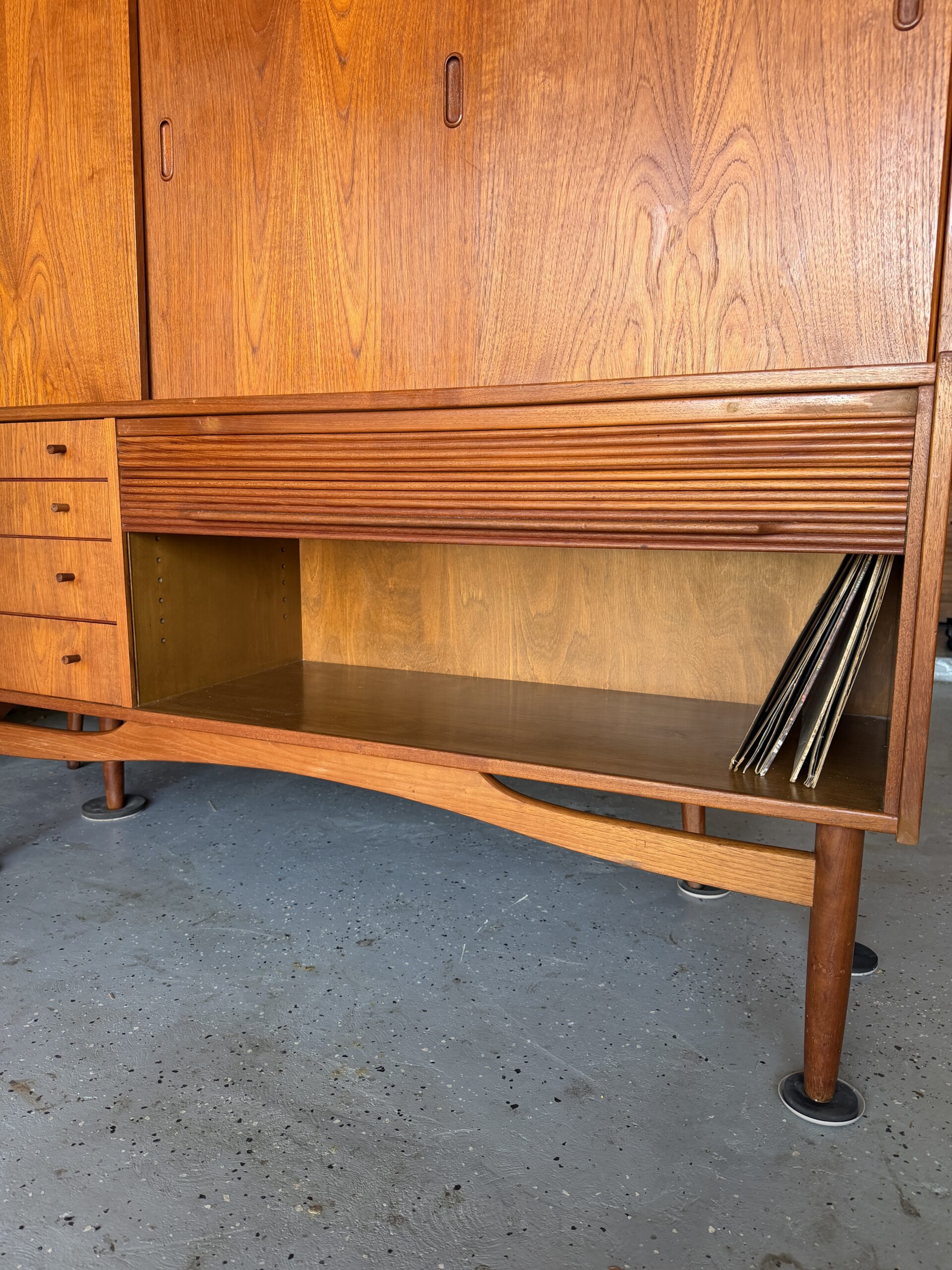 Roll-front / tambour compartment ideal for vinyl records, media storage, or concealed electronics