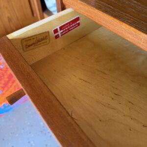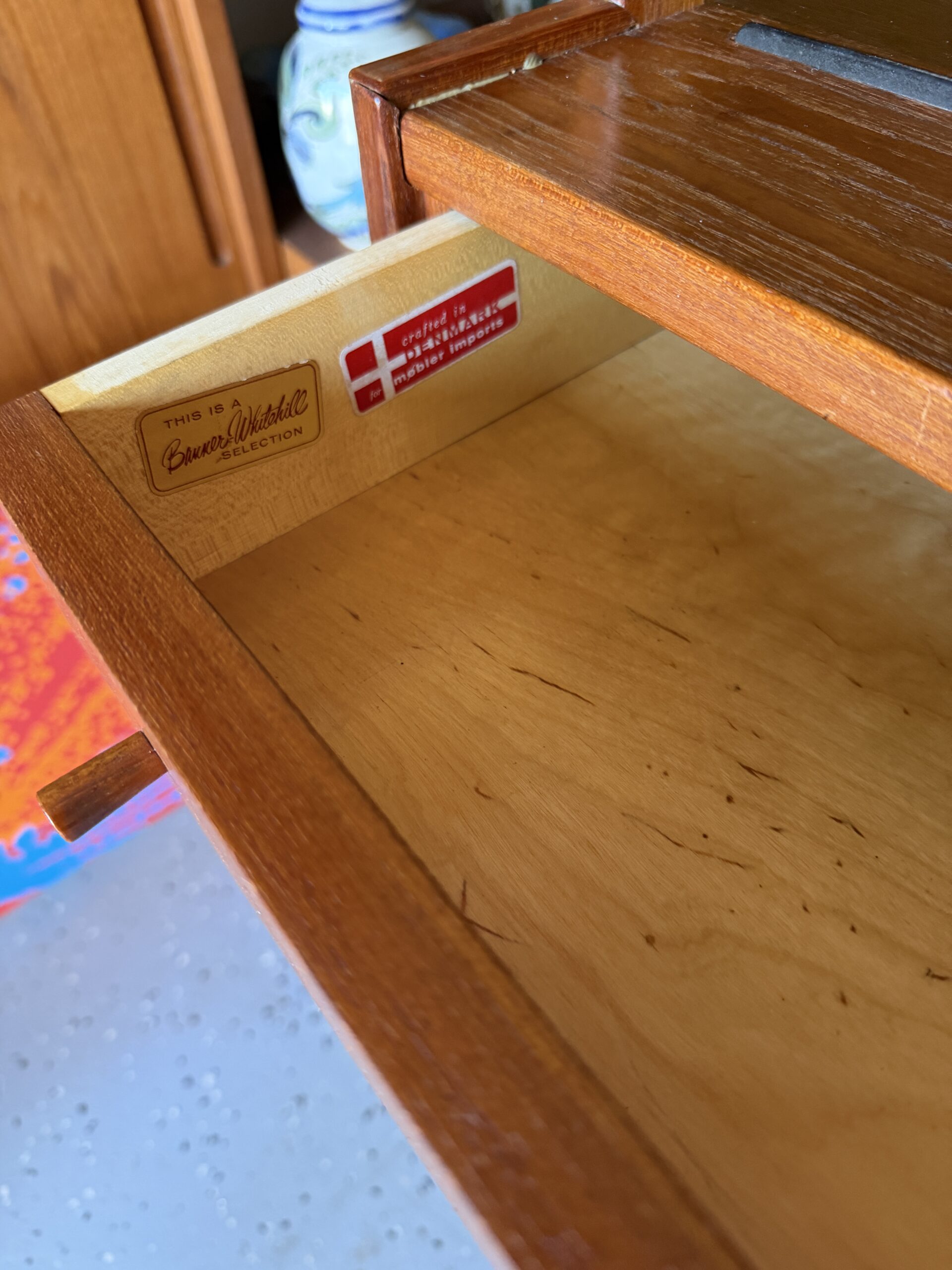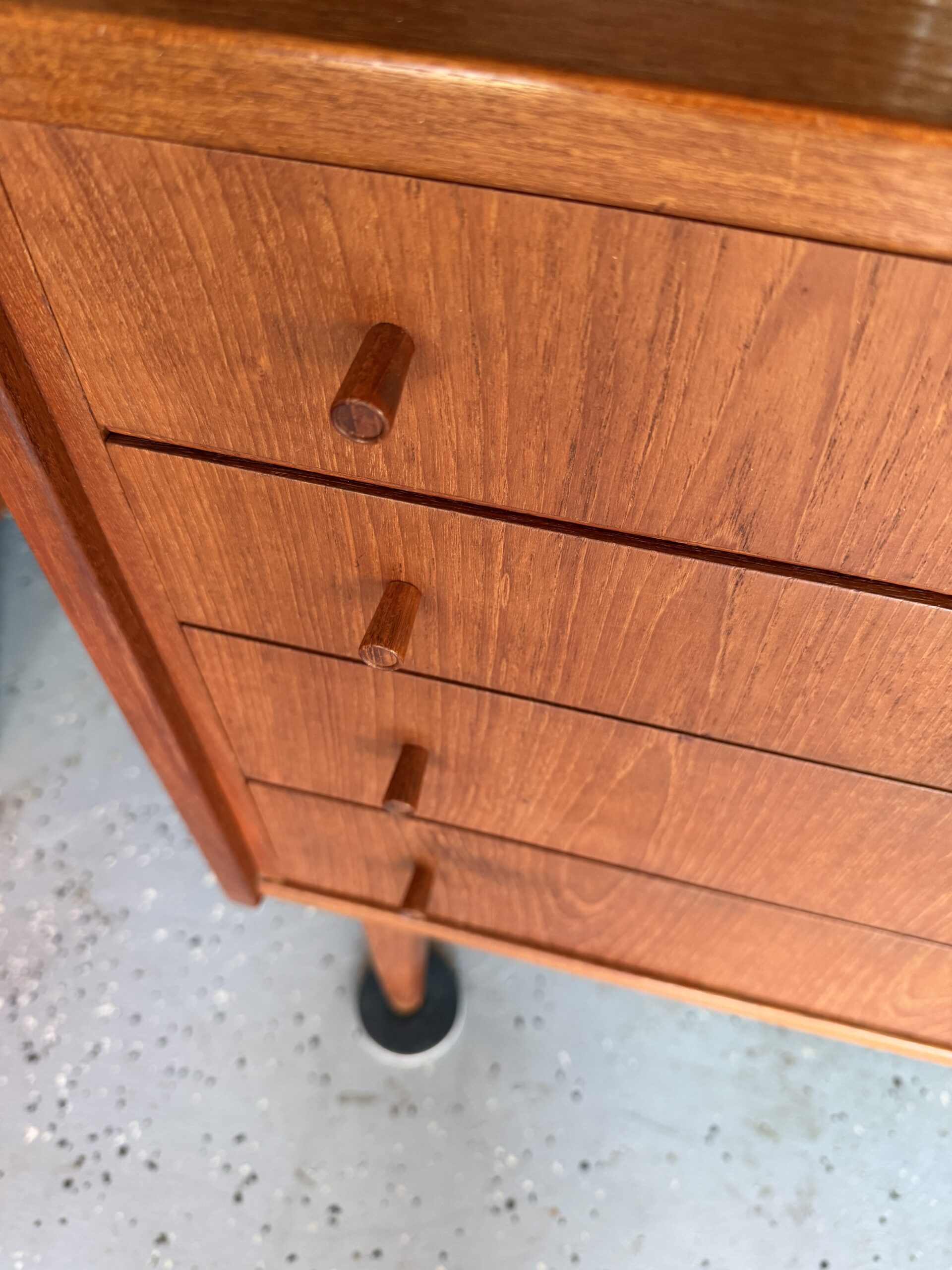 Four smooth sliding drawers with classic Danish wooden pulls