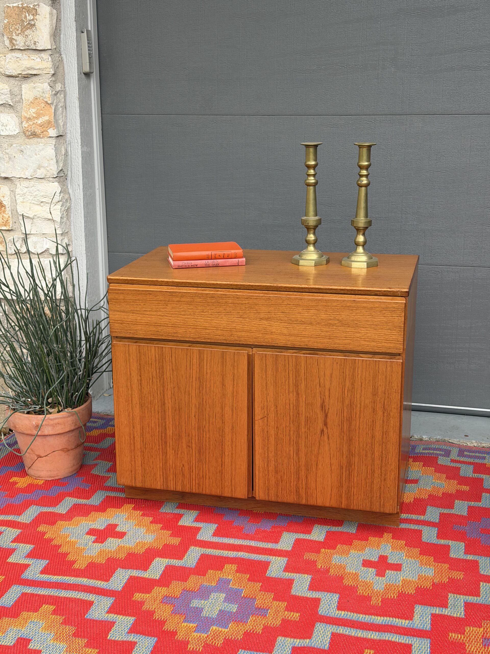 The compact proportions make it perfect as a media cabinet, entryway piece, bar cabinet, or even a small sideboard in an apartment or condo. Classic Scandinavian design that’s both functional and timeless.