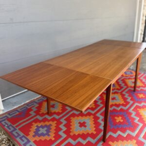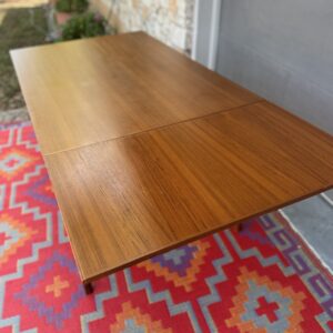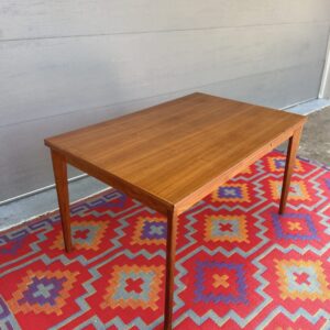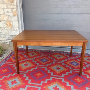 A classic Danish Modern teak dining table by Vejle Stole & Møbelfabrik. The top has been professionally restored, showcasing the warm grain and timeless appeal of teak.