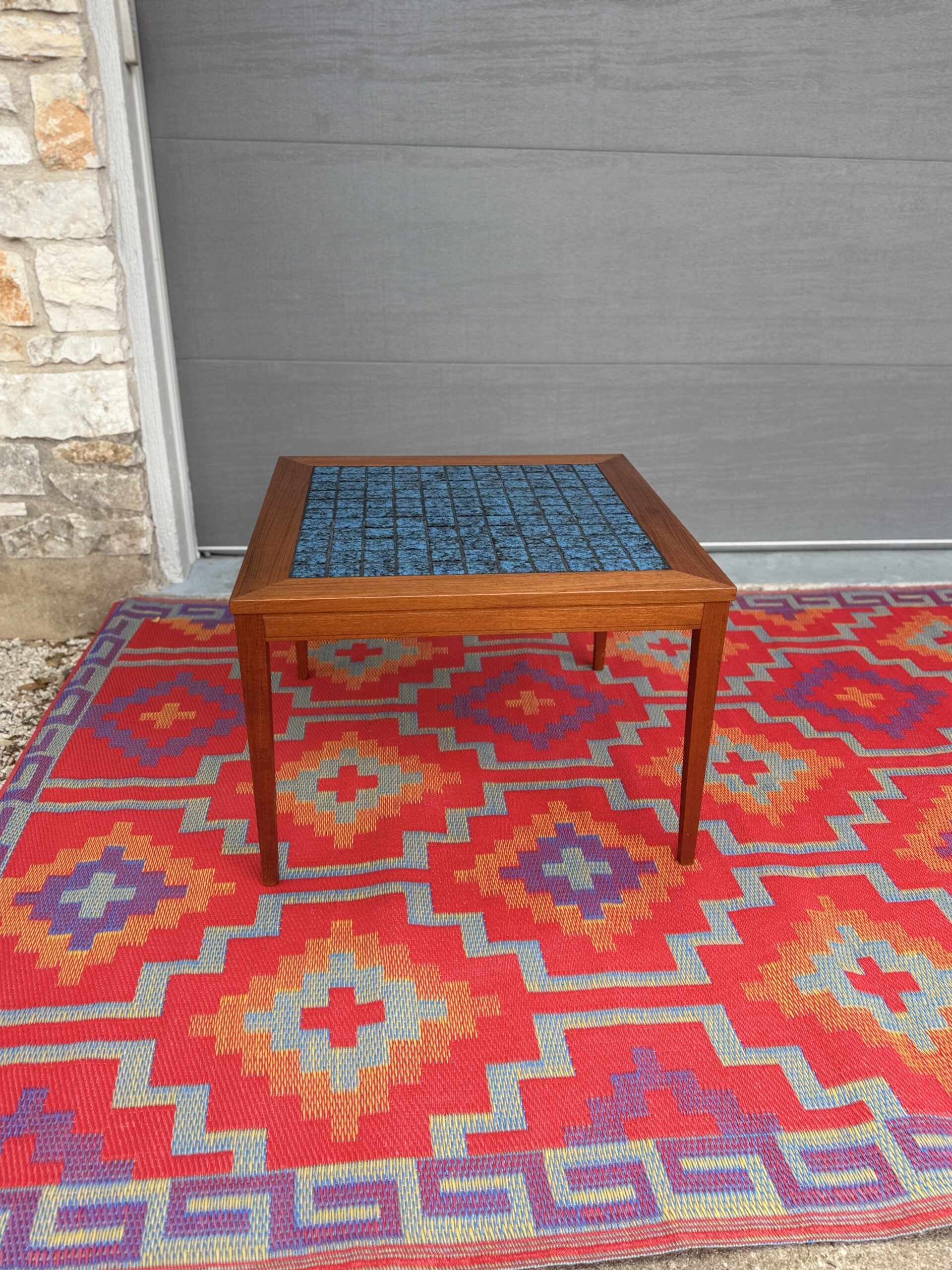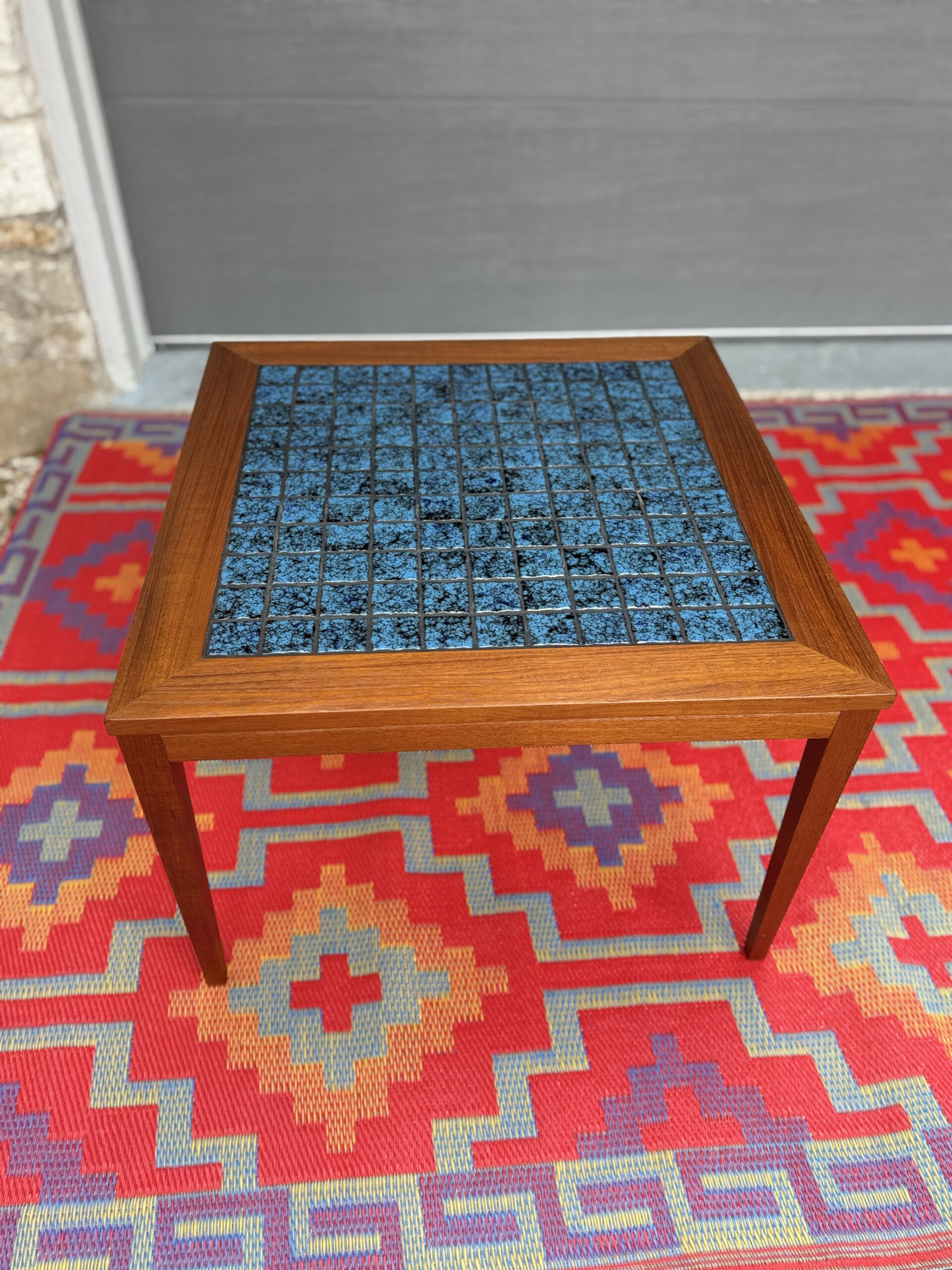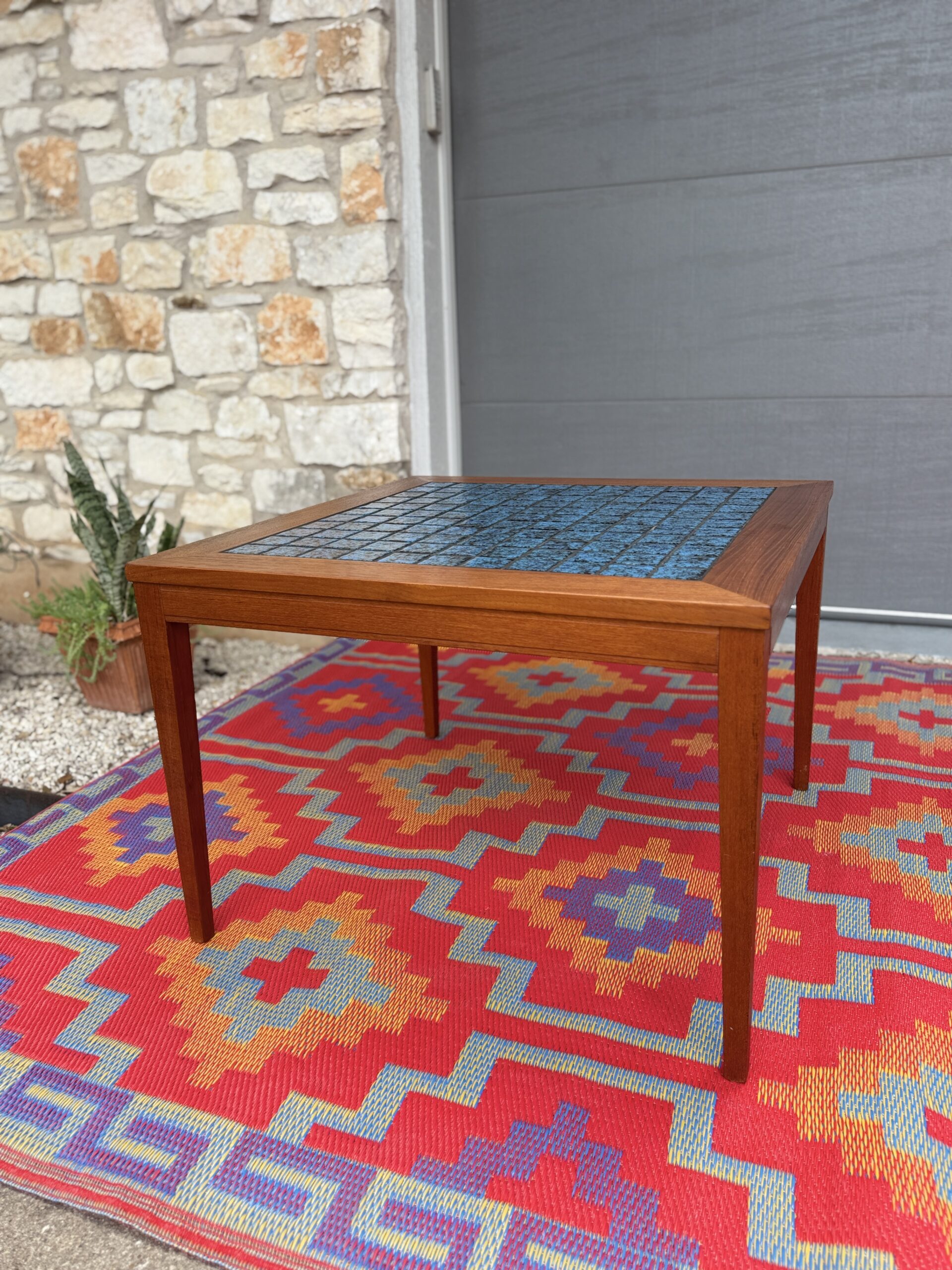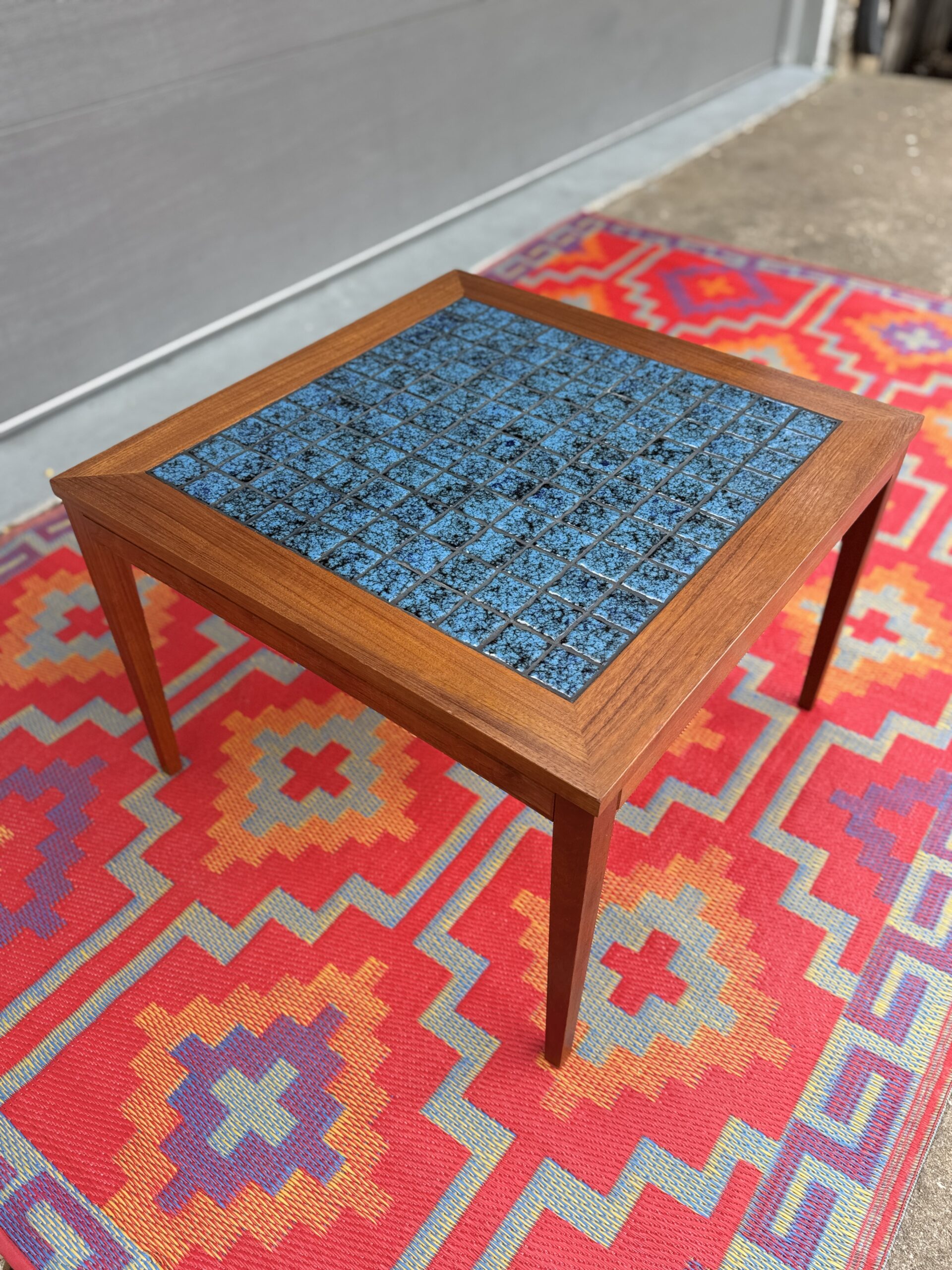 Teak & Blue Tile Table
