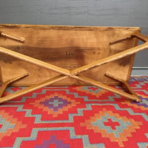 Lane’s mid-century pieces are highly collectible, and this model—with its sculptural “X” base—adds an architectural flair to any space. The refinished top ensures it looks and feels ready for decades of use.