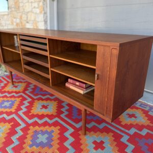 An elegant storage solution perfect for media systems, dining room service, record setup, or a stylish bar.