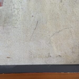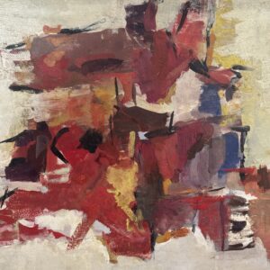 Add some mood to your space with this vintage abstract oil painting. Featuring dynamic brushstrokes in rich reds, browns, and hints of blue and yellow, it’s an expressive piece that makes a statement in any mid-century or contemporary interior.