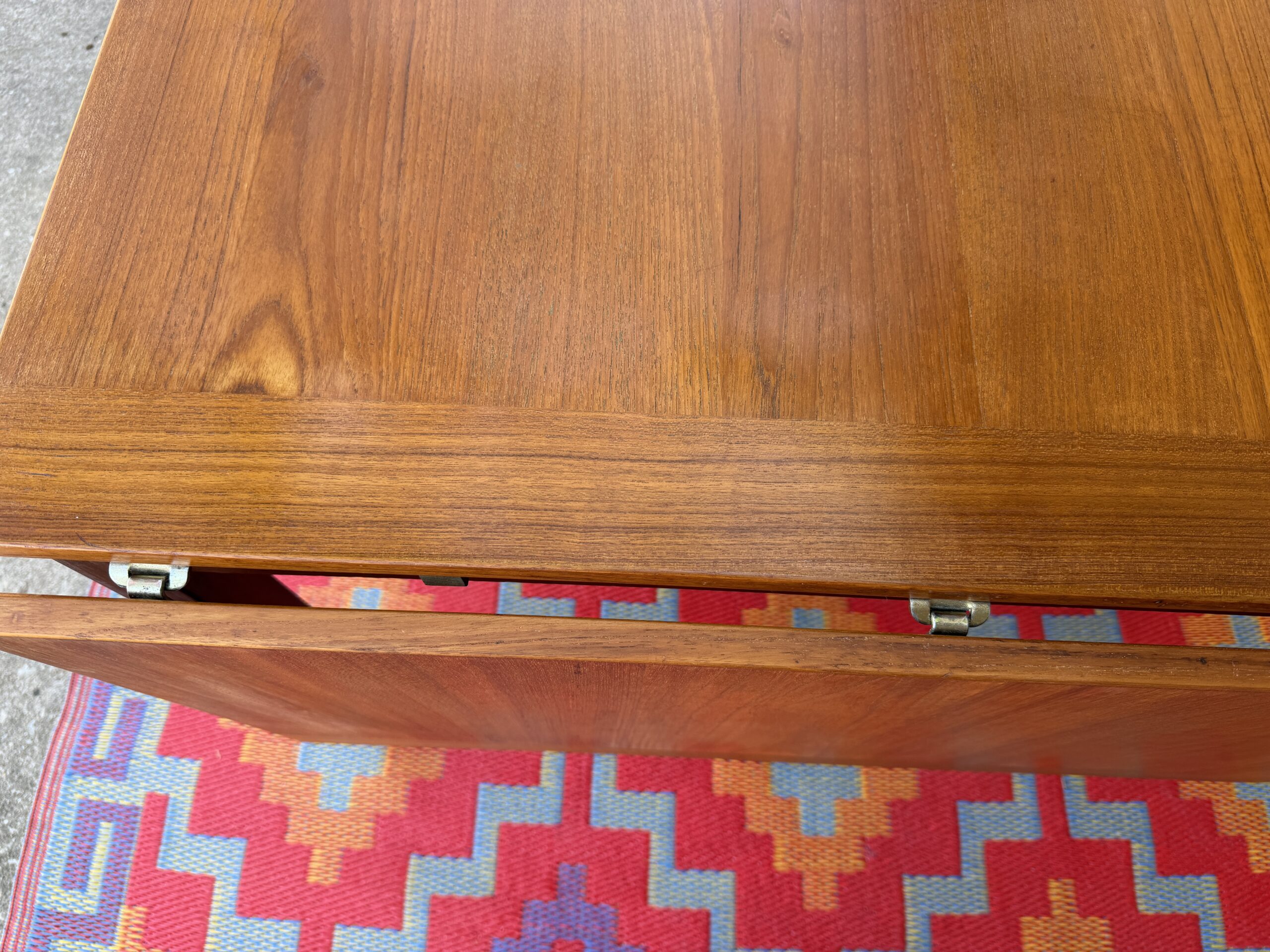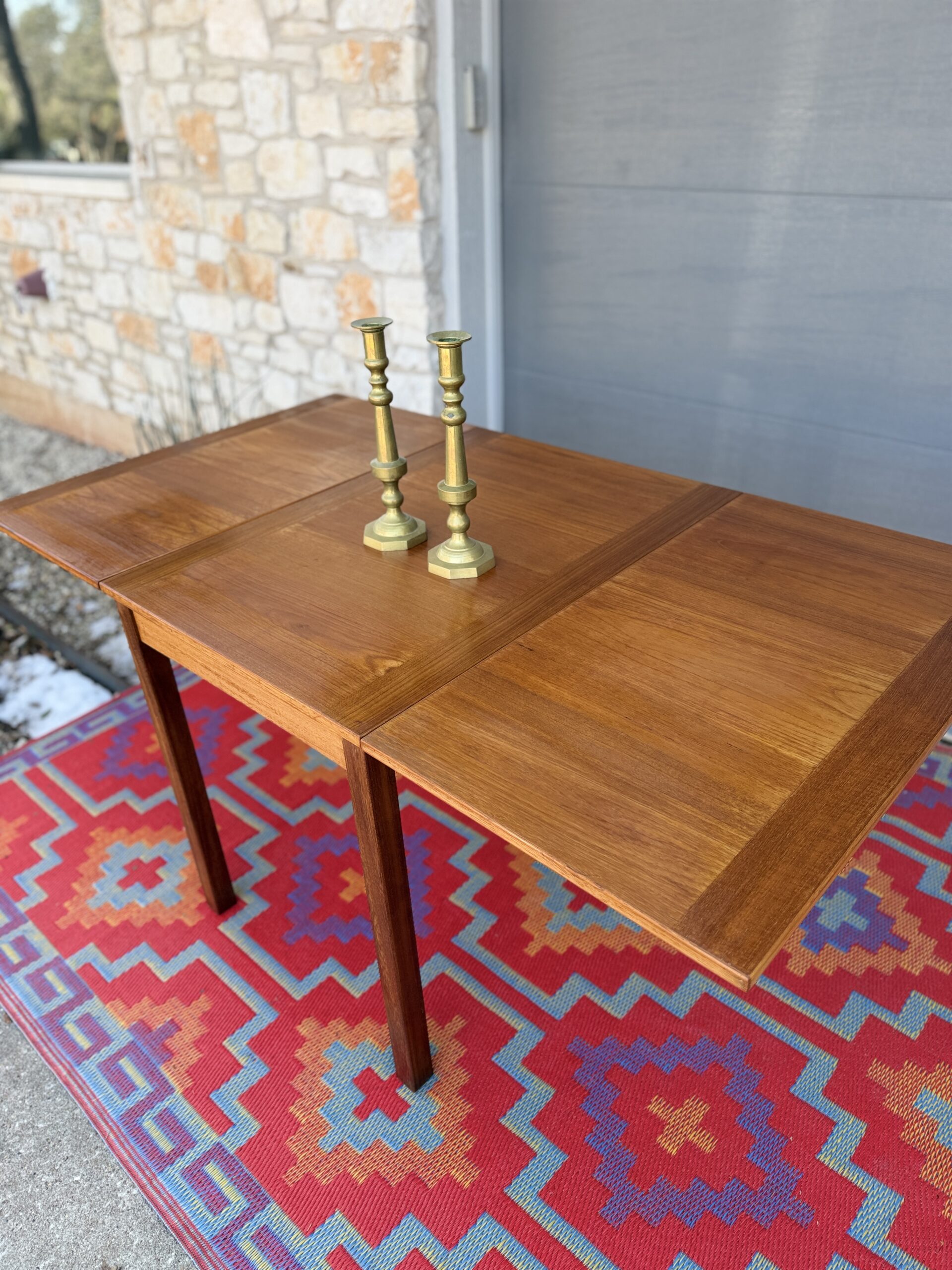 The leaves attach with original brass hooks, a stunning and thoughtful detail that highlights the craftsmanship and quality of this piece. Warm teak grain and clean lines give it that timeless Scandinavian look.