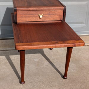 Walnut Step Side Table with Drawer