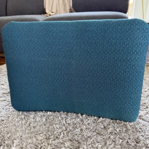 The newly upholstered gently curved cushion provides a comfortable seat and a pop of color, making this piece perfect as a vanity stool, entry bench, foot rest, piano stool, or accent seat in a living space or bedroom.